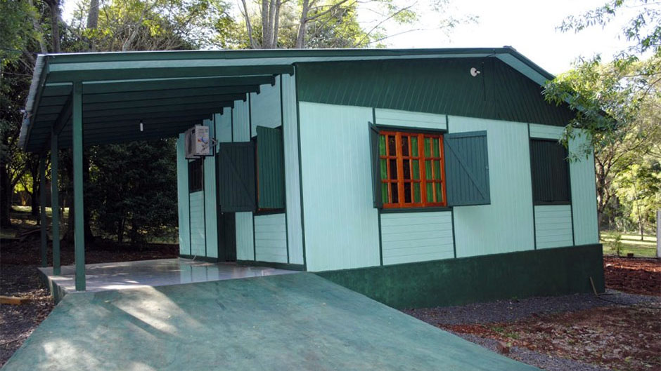 Cabañas emplazadas en un predio parquizado, donde se aprecia parte de la fauna y flora misionera, ofrece acceso a una amplia piscina, zona de play room con cancha de fútbol, mesa de pin pong y mete gol, juegos infantiles y wifi gratuito.