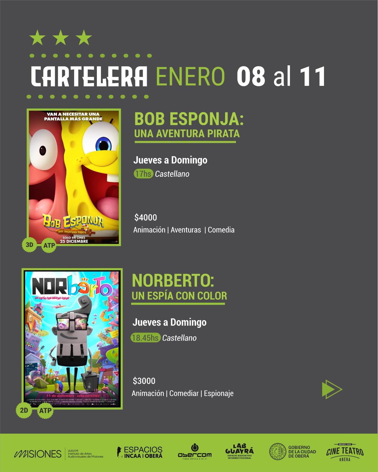 BOB ESPONJA: Una Aventura Pirata – $4000.- 3D