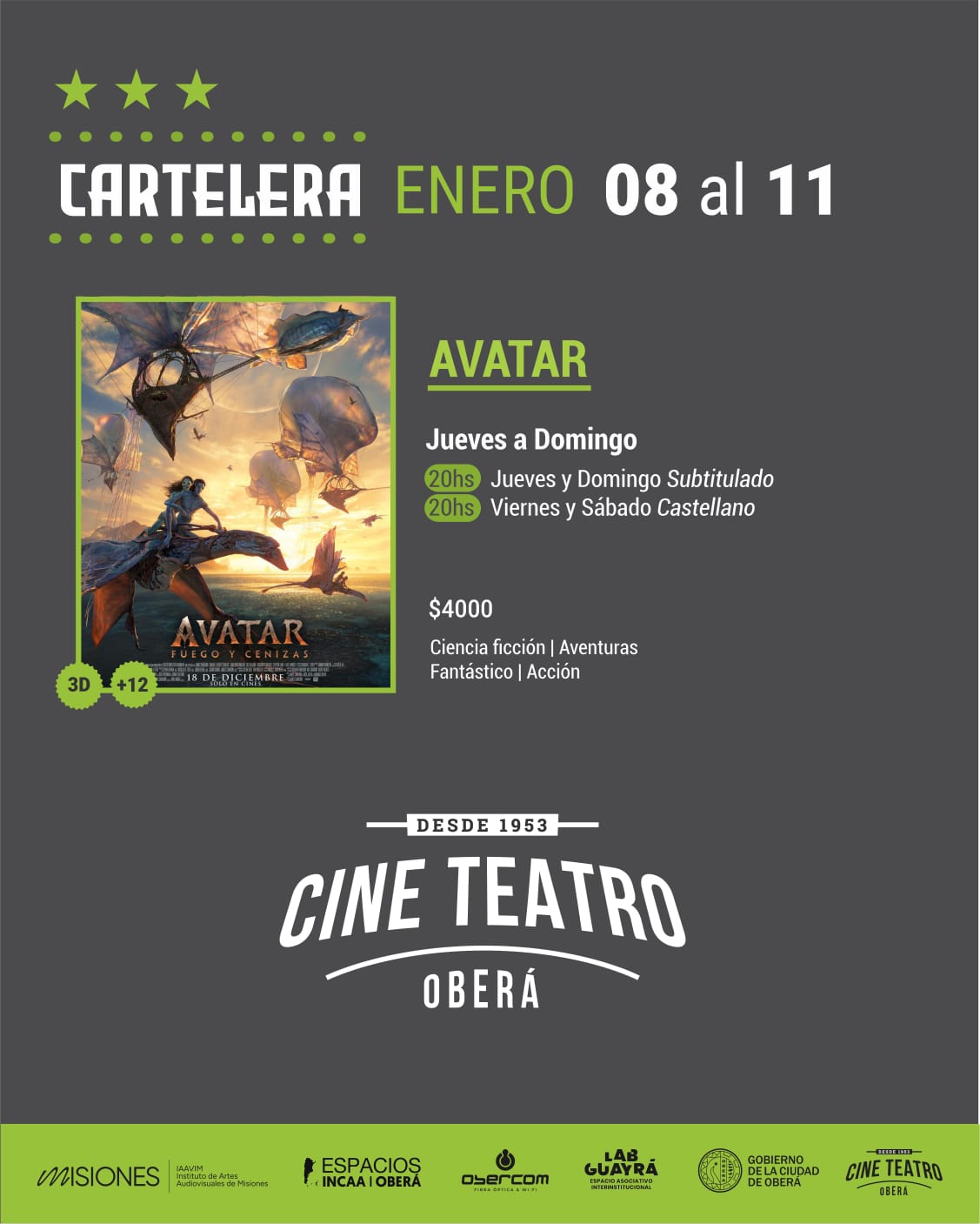 AVATAR 3: FUEGO Y CENIZAS – $4000.- 3D