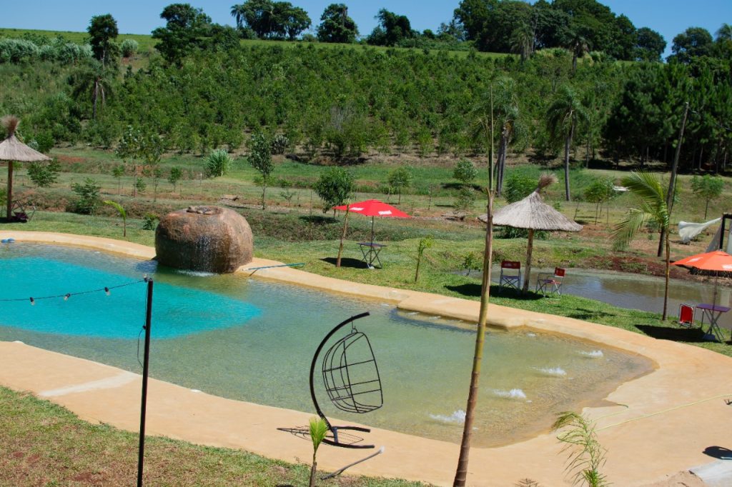 El predio ofrece múltiples opciones para visitantes de todas las edades. Cuenta con bar y restaurante, donde se pueden degustar comidas y bebidas en un ambiente agradable. Dispone de piscinas, cómodas cabañas para quienes desean alojarse y prolongar su estadía. El lugar también incluye un salón de eventos, perfecto para celebraciones, reuniones y encuentros especiales, y canchas de fútbol destinadas a la práctica deportiva y al entretenimiento